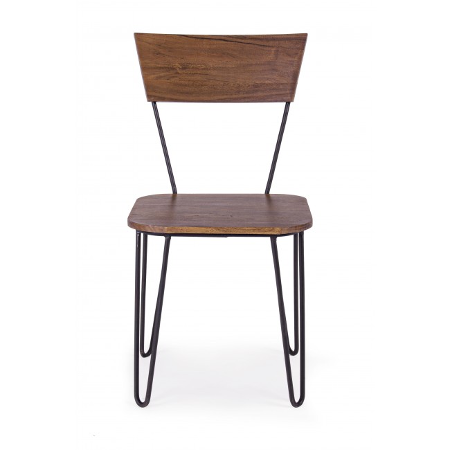 STRUTTURA IN ACCIAIO VERNICIATO A POLVERE EPOSSIDICA CON SEDUTA E SCHIENALE IN LEGNO D’ACACIA. FINITURA A BASE DI NITROCELLULOSA.
