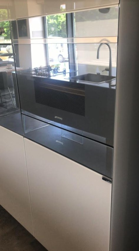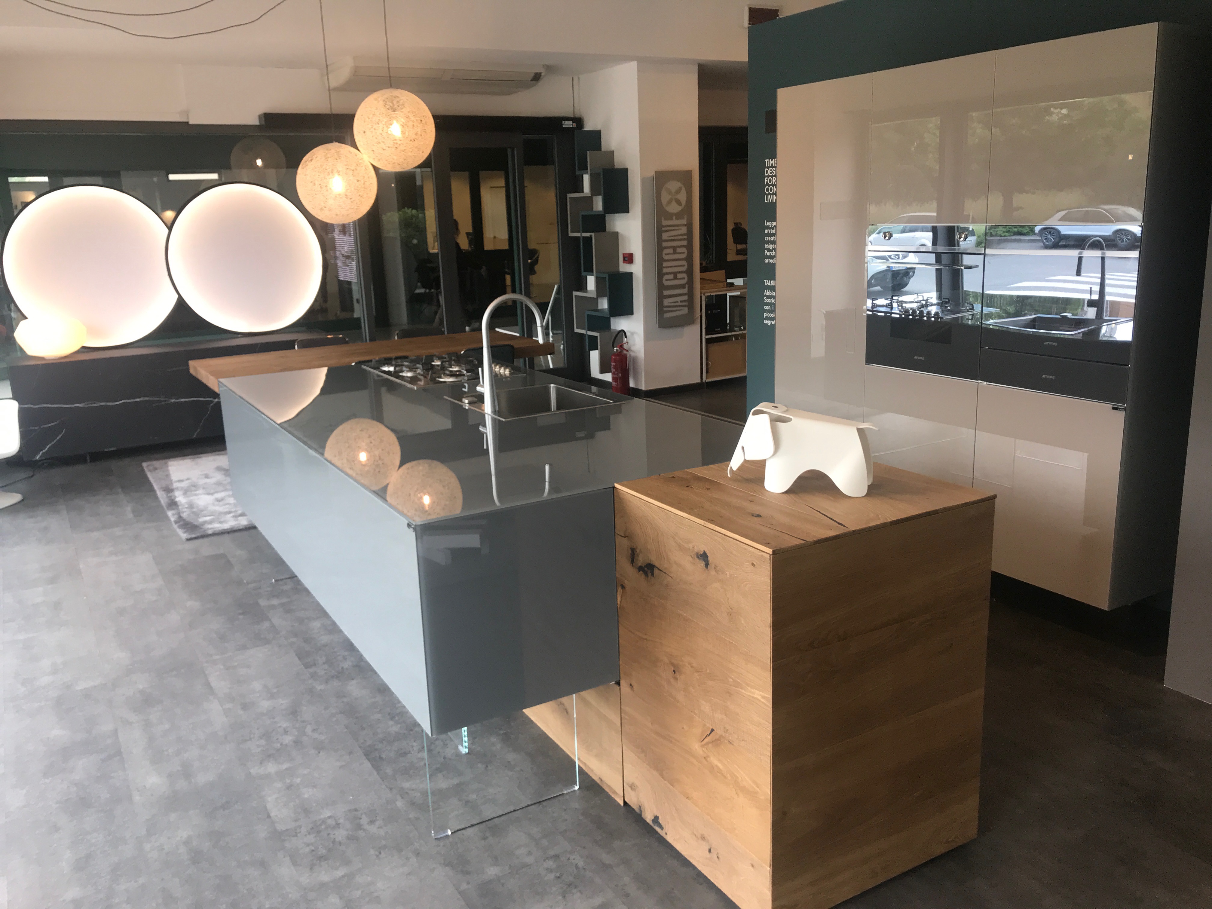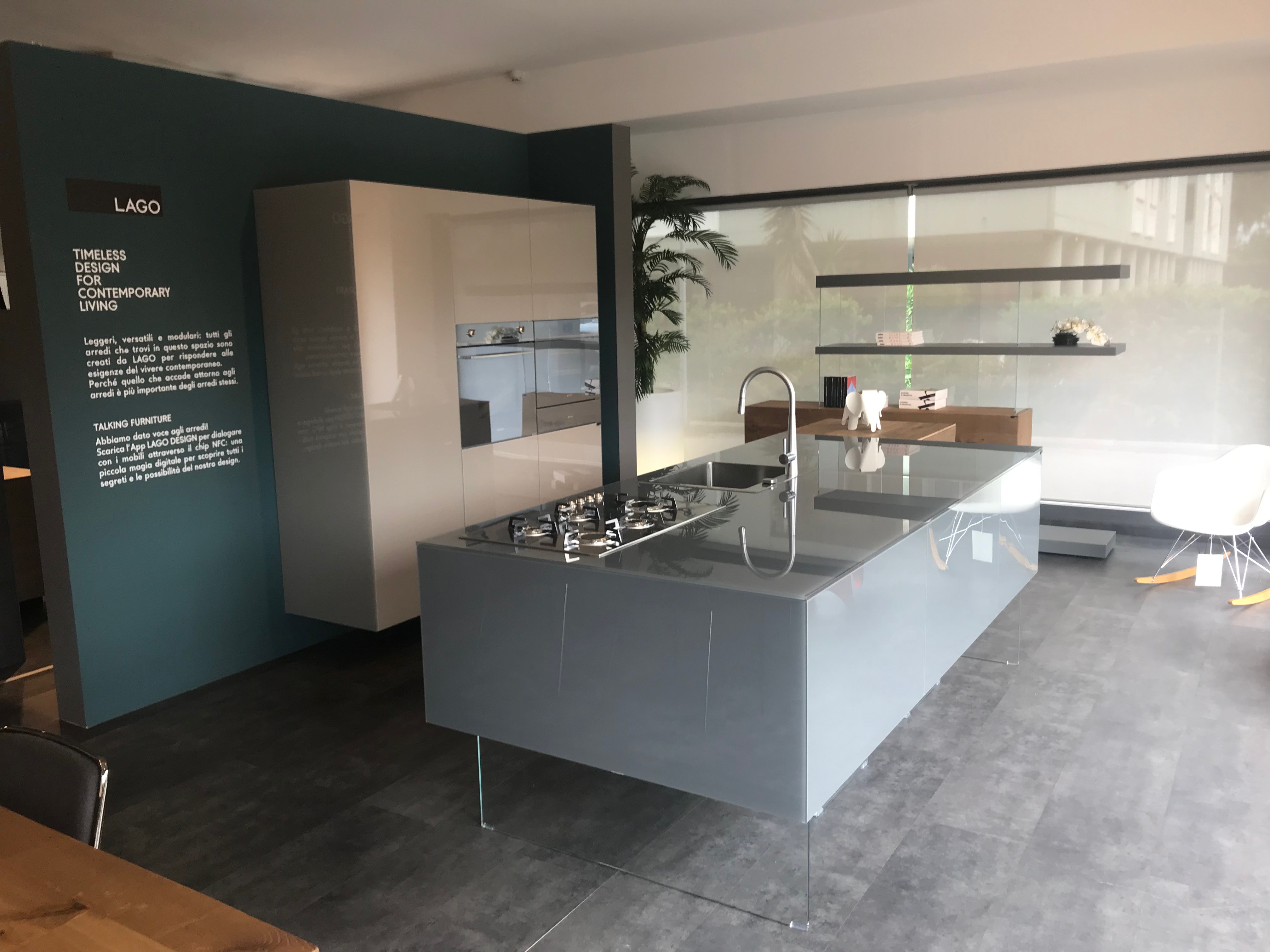 Meravigliosa cucina firmata Lago SCONTATA AL 50%!!! Proposta in vetro lucido e rovere Wildwood. Maniglia Flap. Super accessoriata con elettrodomestici top di gamma: cantinetta, cassetto sommelier attrezzato, piano cottura a fiamma continua (ultima tecnologia di Smeg)…ecc