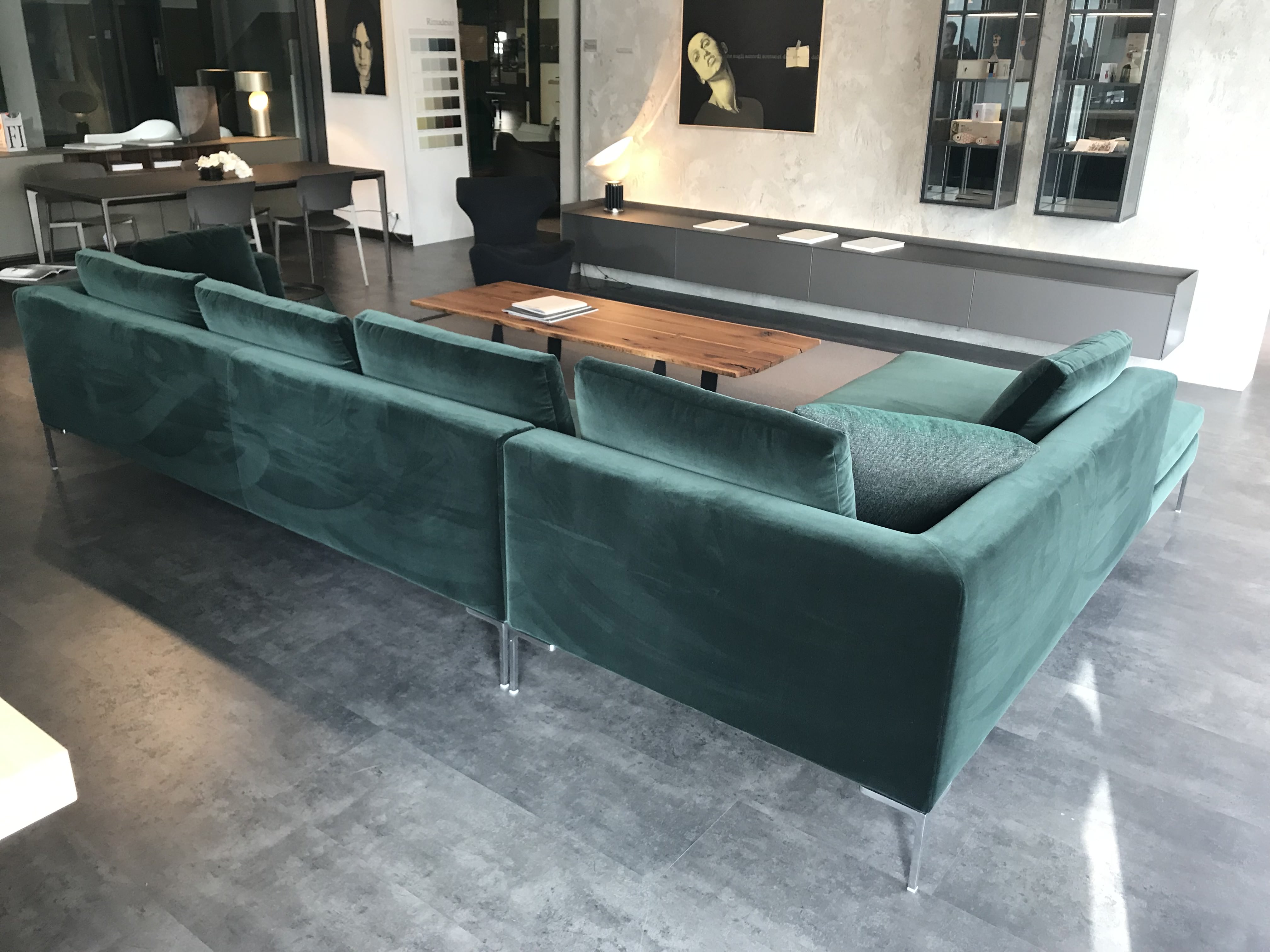 Una delle icone del design italiano by Antonio Citterio, prodotto da B&B Italia. Rivestito in prestigioso velluto. Divano in esposizione (330x 250 cm).